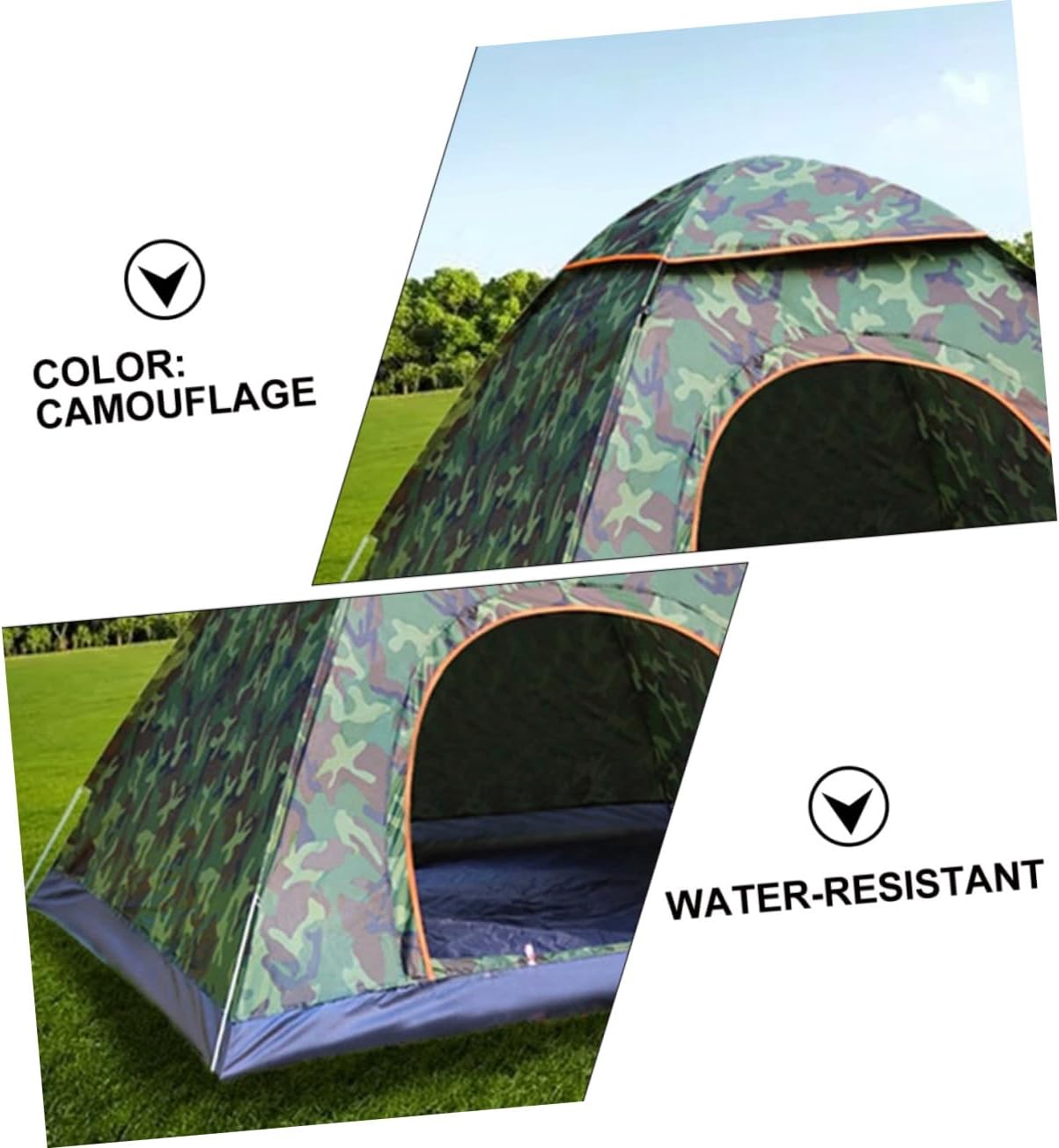 Package List 8 x ground nails 4 x windproof ropes 1 x shelter cover Features - Size: 200.00X200.00X135.00cm/ 78.60X78.60X53.05inch Quick Opening Tent. - Material: Silver coated cloth, glass fiber Automatic Tent. - Color: Camouflage Fully Automatic Tent. - The fiberglass rod is very strong, which can ensure the safety of you and your family Foldable Tent. - With moderate thickness. It not only ensures the effects of sun protection and ultraviolet protection in summer, but also does not cause sweltering due to excessive thickness Travel Tent. - material, which is wear-resistant, can be used as leisure camping cloth to meet your rainproof requirements Sun Shelter. - Fully automatic quick open, build- , large family style, waterproof, -proof and wind-proof, light and convenient Camping Tents. - The zipper door is easy to enter, more heat insulation, better sun protection Tent.Goods DescriptionBackpacking Tents Easy to experience, quick-open hydraulic spring bracket, no need 3 seconds to assemble, upgraded hydraulic spring bracket, successfully transition from semi-automatic to fully automatic quick-opening, fine hydraulic design, strong and durable, can also easily build , Quick opening bracket, simple and convenient
