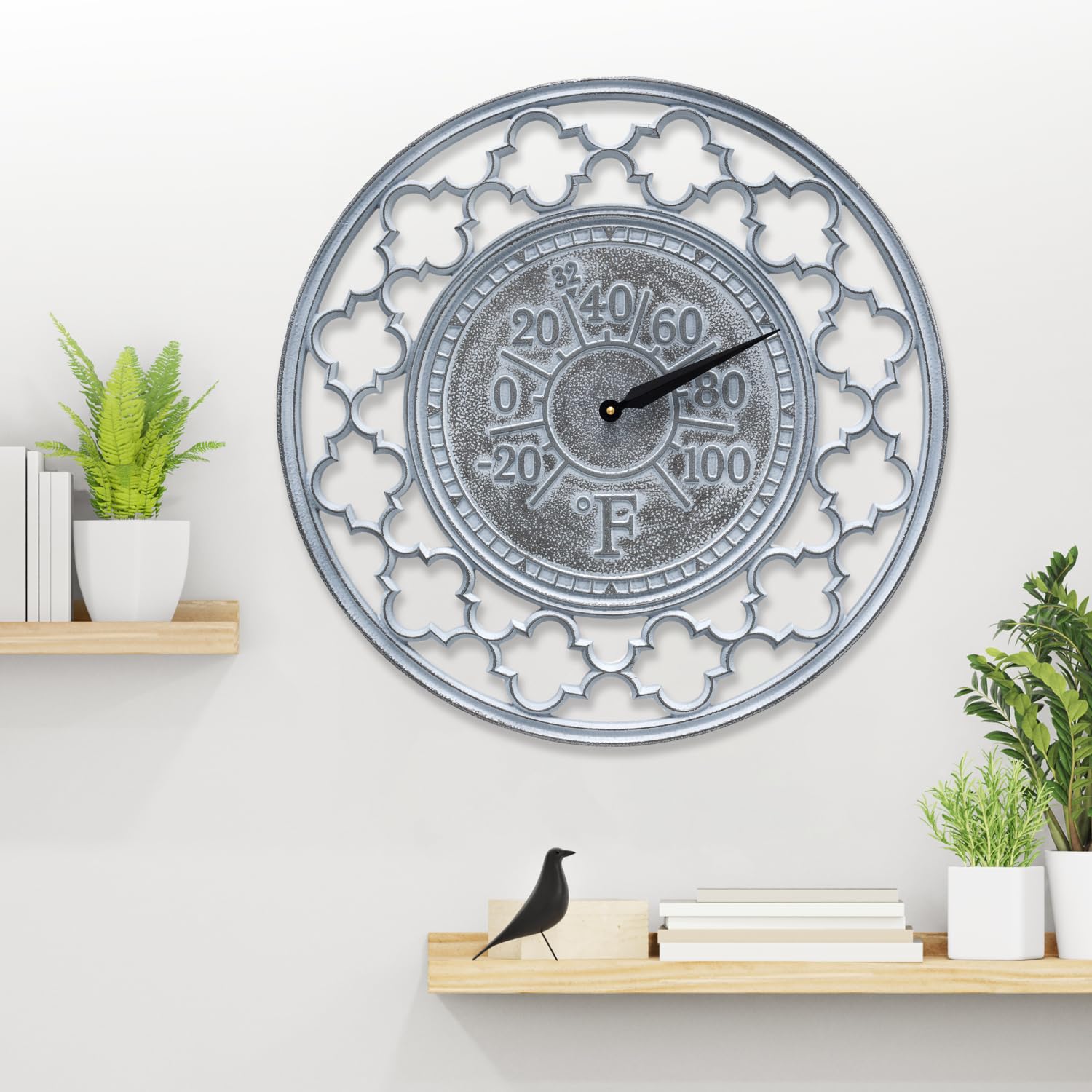 Enhance your outdoor or indoor space with the timeless elegance of the Whitehall Products wall-mounted cast aluminum thermometer. Measuring 21" x 21" x 1.25", this artisan thermometer showcases a hand-made, premium-grade aluminum casting with intricate, detailed designs. Its arts-and-crafts aesthetic, paired with traditional styling, adds classic charm to any setting. Built to last, it’s crafted from sand-cast, high-density aluminum alloy and protected by Alumi-Shield, ensuring durability and resistance to harsh weather. Hand-finished with contrasting accents, this American-made thermometer features high-quality movement for precise and reliable readings. Perfect for elevating both function and style in your home or garden.