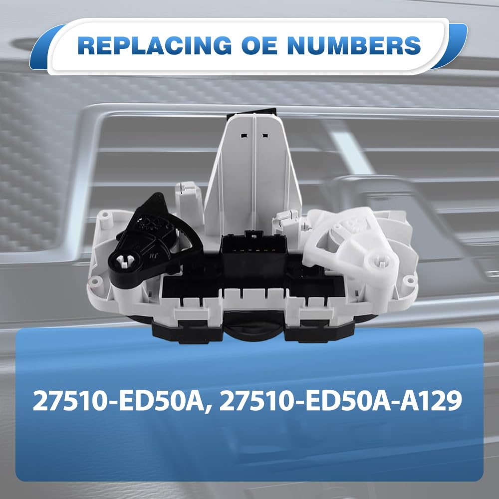 Specification:Product Name: A/C Heater Control Panel Plate Climate Control SwitchMaterial: ABSColor: BlackQuantity of Pins on Terminal: 14Part Number: 27510-ED50A, 27510-ED50A-A129Note: Please check on your car model details and exact OE number to confirm if this item is fittedFitment:Compatible with Nissan Tiida 2007-2017Compatible with Nissan Sylphy 2007-2017Compatible with Nissan Livina 2007-2017Compatible with Nissan NV200 2007-2017Compatible with Nissan Geniss 2007-2017Note: Please check on your car model details and exact OE number to confirm if this item is fittedPackage Included:1 x A/C Heater Control SwitchBatch Variations Notice: Due to ongoing improvements, product details may vary slightly from images shown. Please refer to received item for exact features — each carefully inspected for quality.