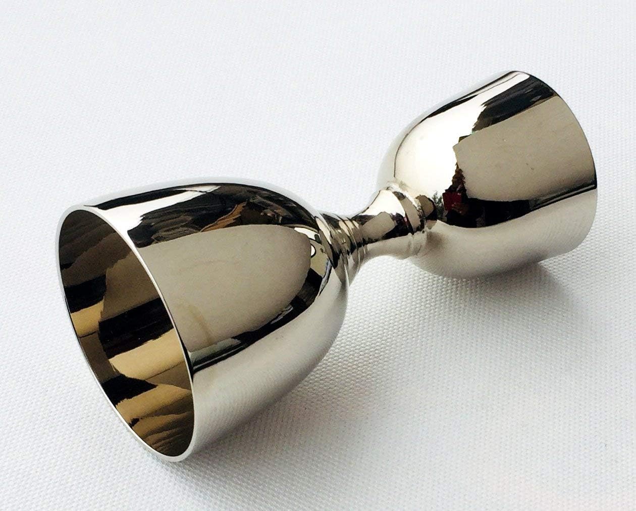 The cocktail jigger or peg measurer is crafted elegantly in a vintage style with brass material. The jigger has got a shiny silver finish giving a new addition to your home bar. Made with love and perfection to add to your bar collection, this cocktail jigger is an eye-catcher that has made its way to your home from the bar. One part of the peg measurer measures 30 ml of your drink with a mouth of 5 cm and another measure 60 ml with a mouth of 4 cm. The length of the peg measure 10.5 cm.